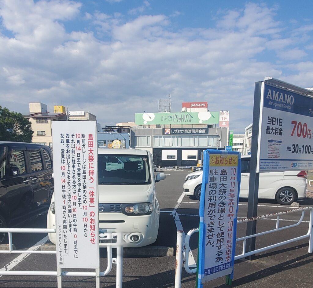 10月10日(金)午前0時~14日(火)正午まで島田大祭の会場として使用するため、駐車場の利用ができません。ご協力をお願いします。