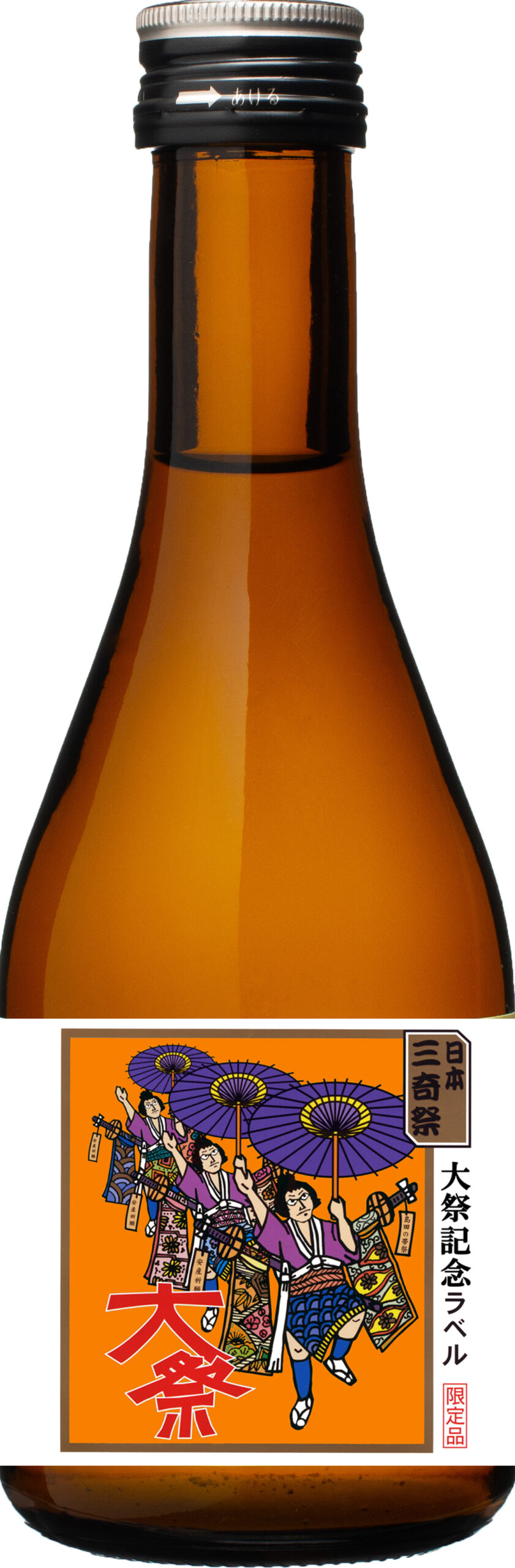 「若竹純米酒大祭記念酒」大奴の姿が大きく描かれた色鮮やかなラベルは、見ているだけで祭囃子が聞こえてきそうな賑やかさ。島田市の老舗「大村屋酒造場」が造る自慢の逸品で、落ち着いた香りにやわらかな口当たり、爽快なのど越しが特徴です。300mlとお土産にもぴったりなサイズです。また、大きく「祭」の文字がデザインされた1,800ml入りもあります。お祭りの開催期間だけの限定販売なので、ぜひ手に入れてみてください。