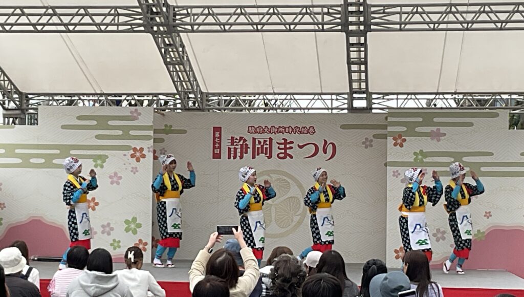 令和8年4月5日「第70回 静岡まつり」のステージにて「かなや茶娘踊り隊」として茶娘踊り5曲を披露しました。