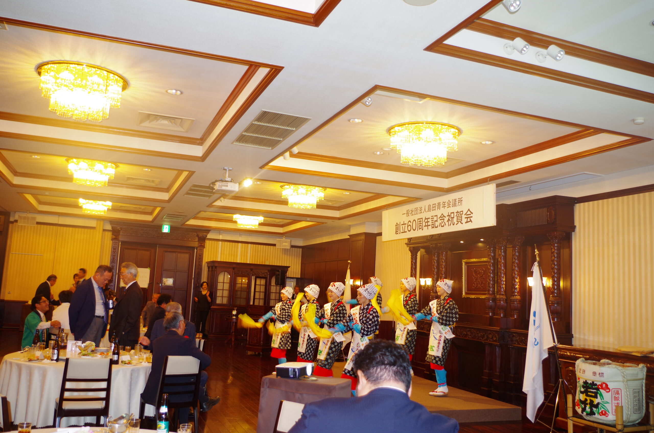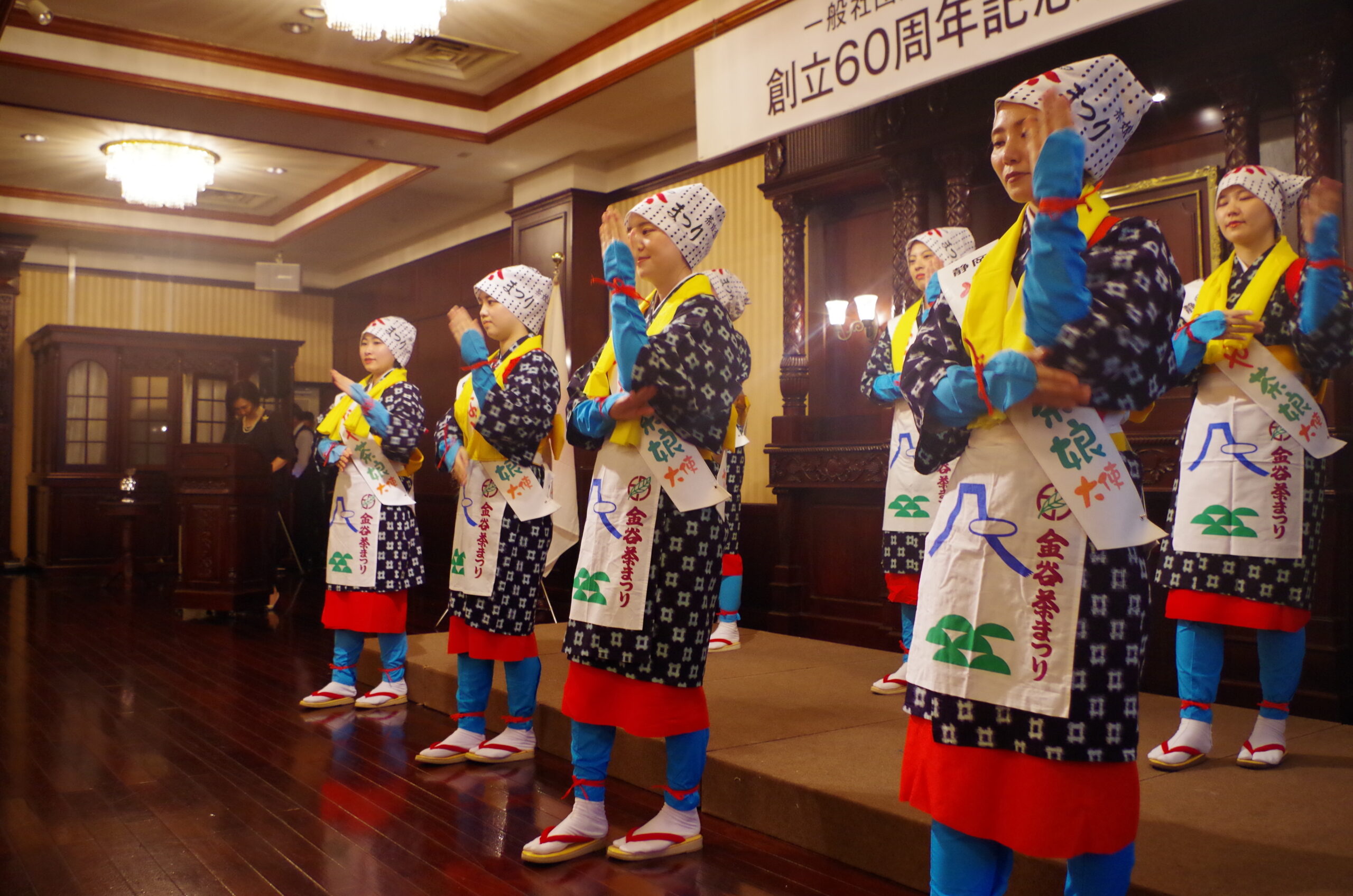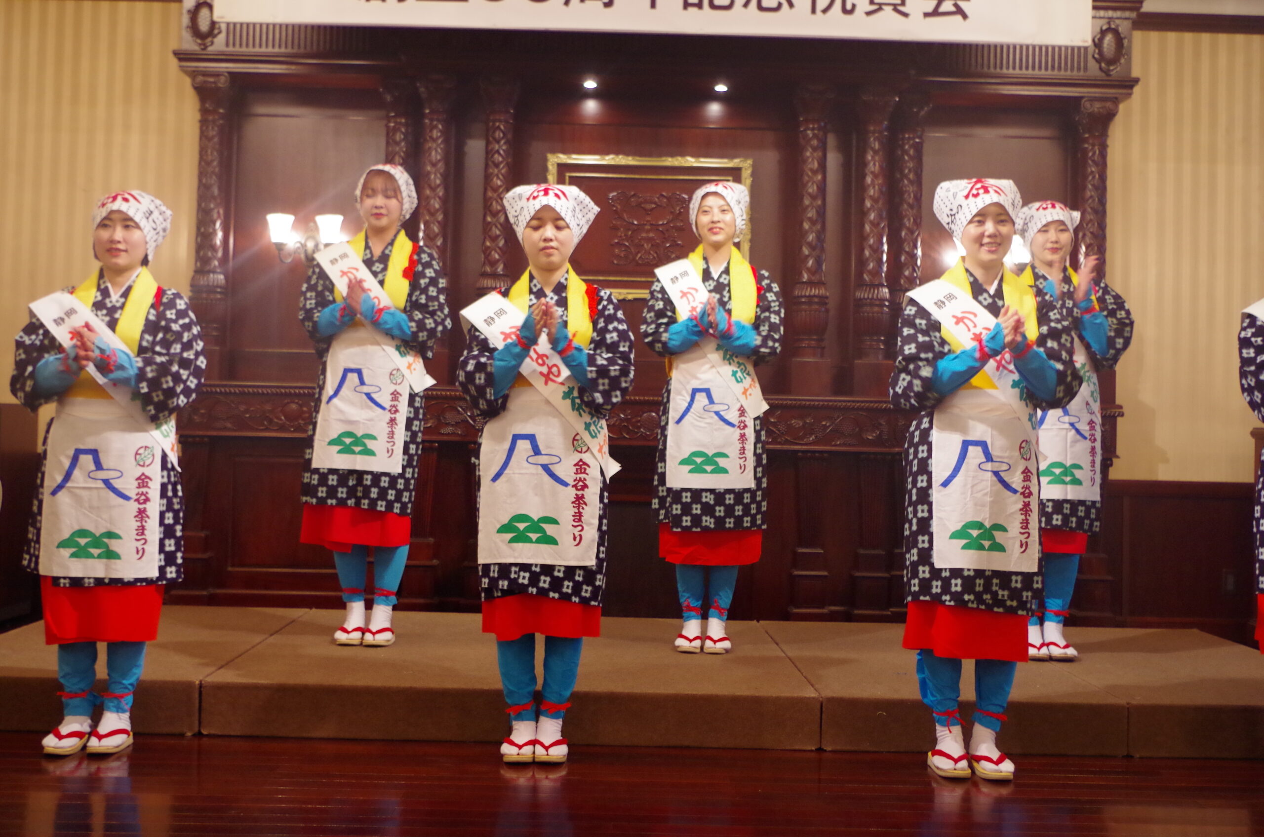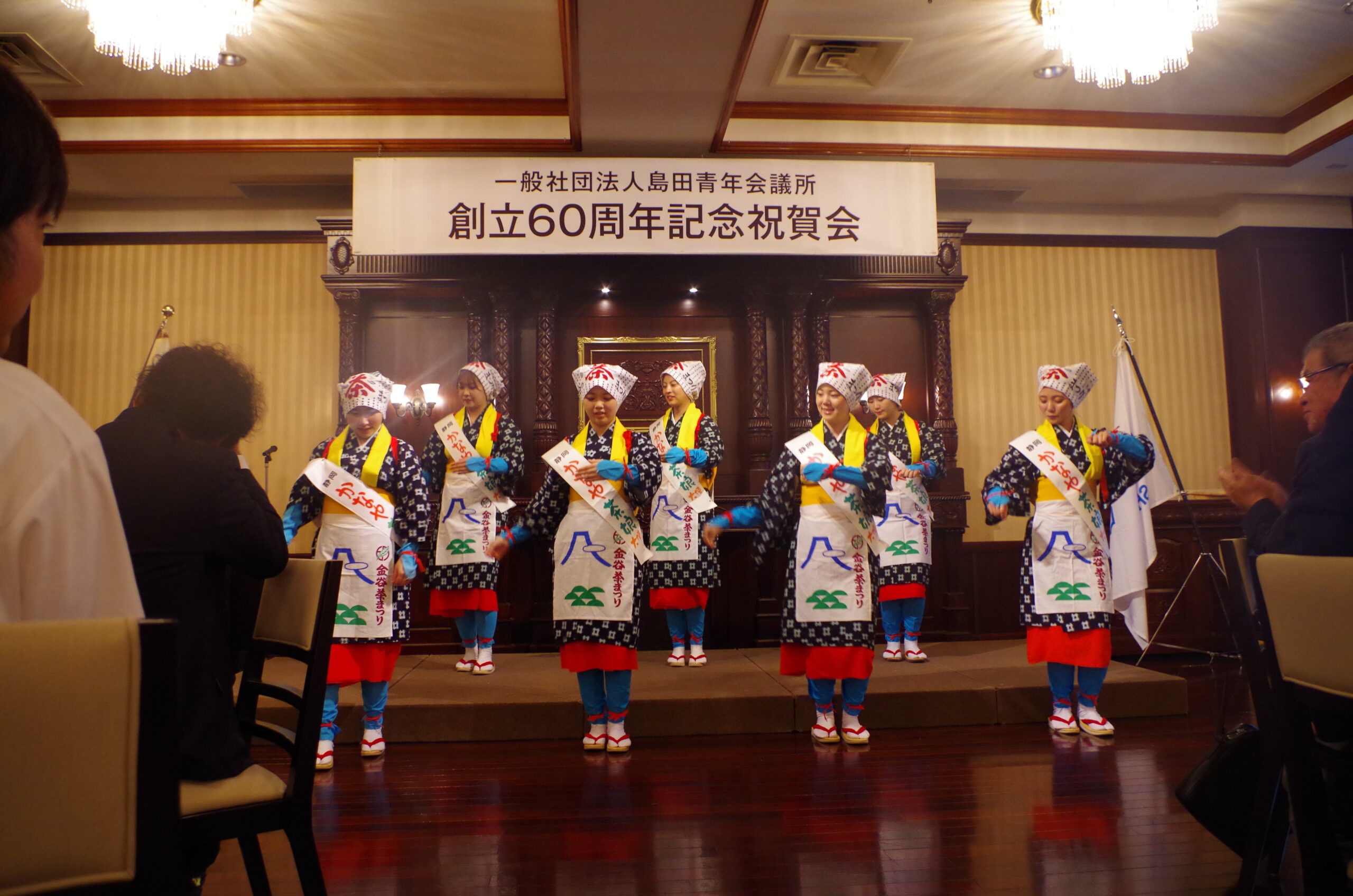 令和7年8月30日、一般社団法人島田商工会議所60周年祝賀会にお招きいただき、「かなや茶娘大使」7名による伝統的な茶娘踊りを披露しました。